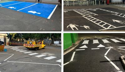 Includes: bays, arrows, numbering, lettering, EV bays, parent & child, pedestrian routes and more.